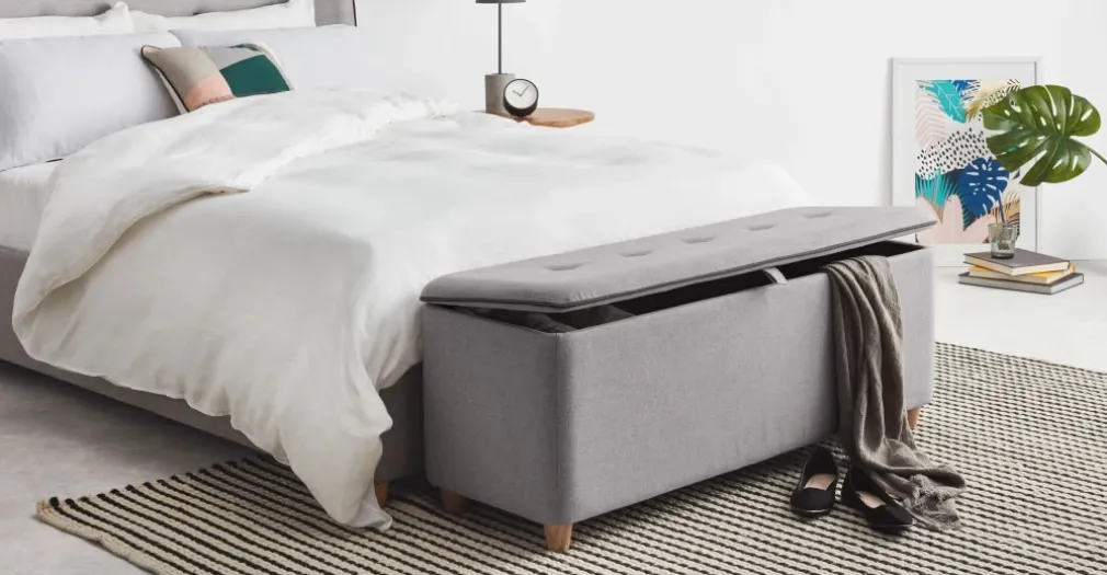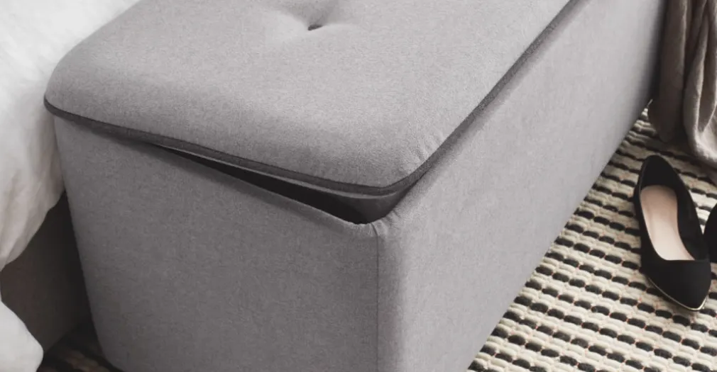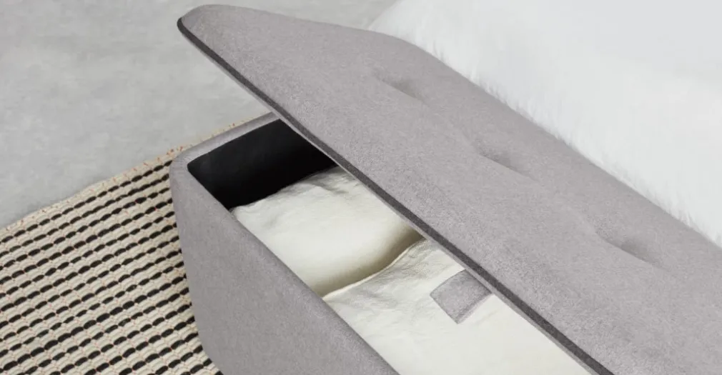 Banco con almacenaje tapizado Burcot – Gris en contraste