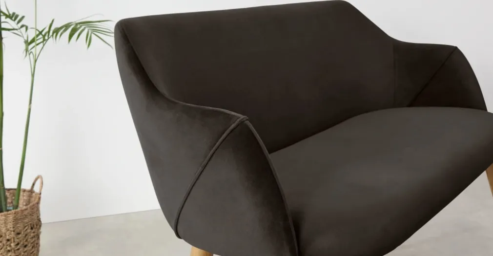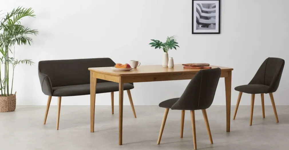 Banco de comedor compacto Lule – Terciopelo gris nutria y roble