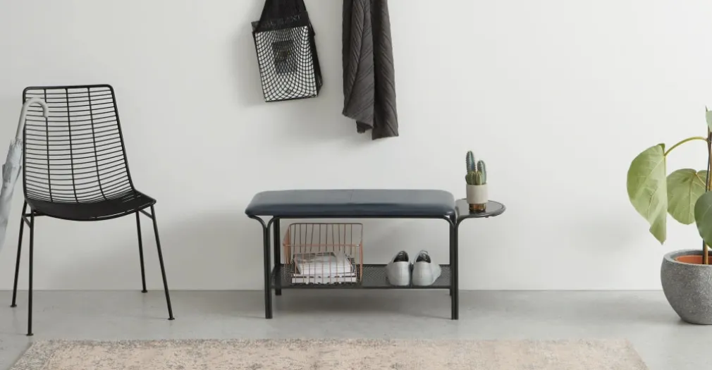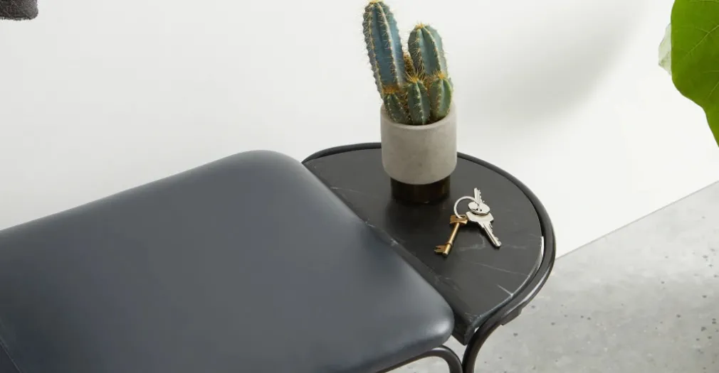 Banco de pasillo Dane – Cuero gris y mármol negro