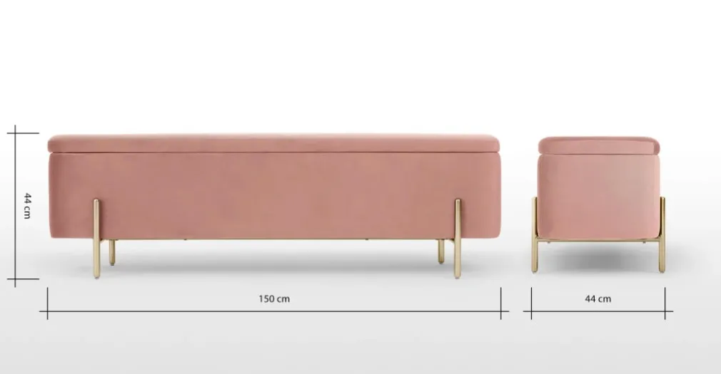 Banco otomana Asare 150cm – Terciopelo rosa