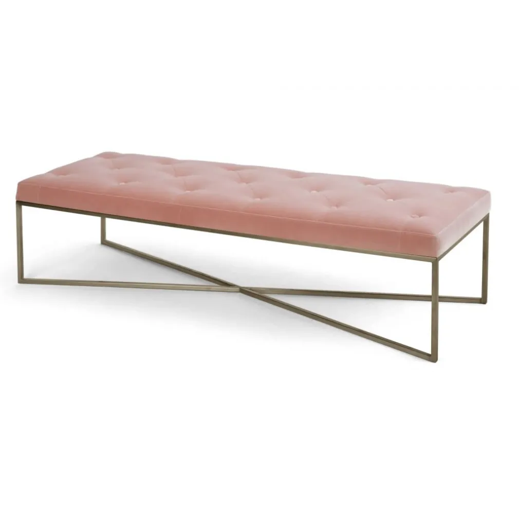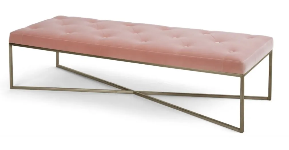 Con unas elegantes y limpias líneas más respaldo abotonado tradicional crean un otomana perfecto para descansar con estilo. El acabado de Julianne que trae Yolodecoro con patas de metal con acabado dorado vintage, le da un toque vanguardista y moderno a la clásica otomana abotonada.