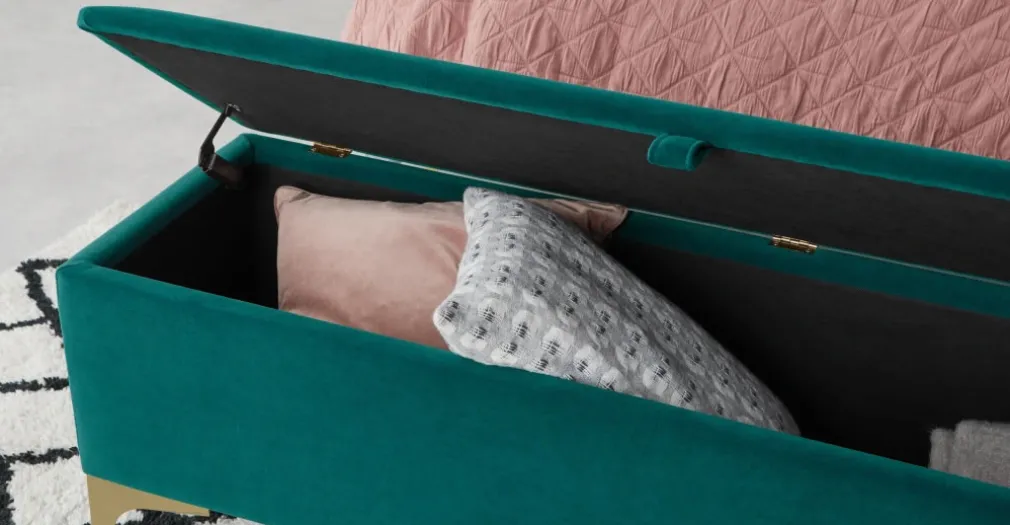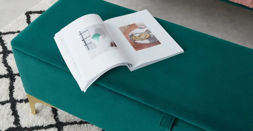 Banco otomana Linnell – Terciopelo azul espuma de mar