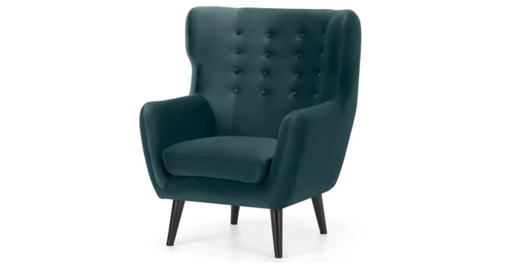 Yolodecoro te trae el Sillón Kubrick, su estilo con líneas curvas y patas en angulo son una versión inspirada de los años 60, el diseño clásico de la silla con su respaldo en ala son un giro retro a lo sofisticado, el detalle del botón agrega estructura y textura al respaldo, Kubrick te ofrece una comodidad de lujo por la forma envolvelte del respaldo alto y la suavidad de la espuma viscoelástica que posee el tapizado de terciopélo de algodón poliester complementan las cualidades para que este Sillón brinde una suavidad máxima y por ende bienestar para quienes lo usan.