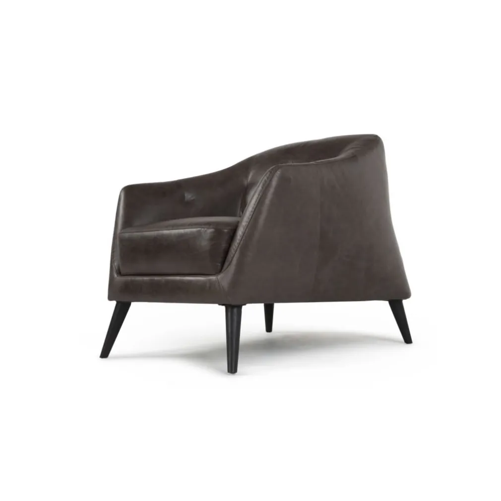 Yolodecoro.pe te trae el Sillón Nevada con su diseño acolchado y brazos altos y recogidos que lo hacen lujoso y moderno, el estilo de su espaldar le dan suavidad y confort, las patas anguladas de madera le dan a esta pieza el caracter sofisticado que se complementa con su tapiz en cuero sintético, su espuma viscoelástica le aportan la suavidad necesaria para llenar al usuario de bienestar y comodidad.
