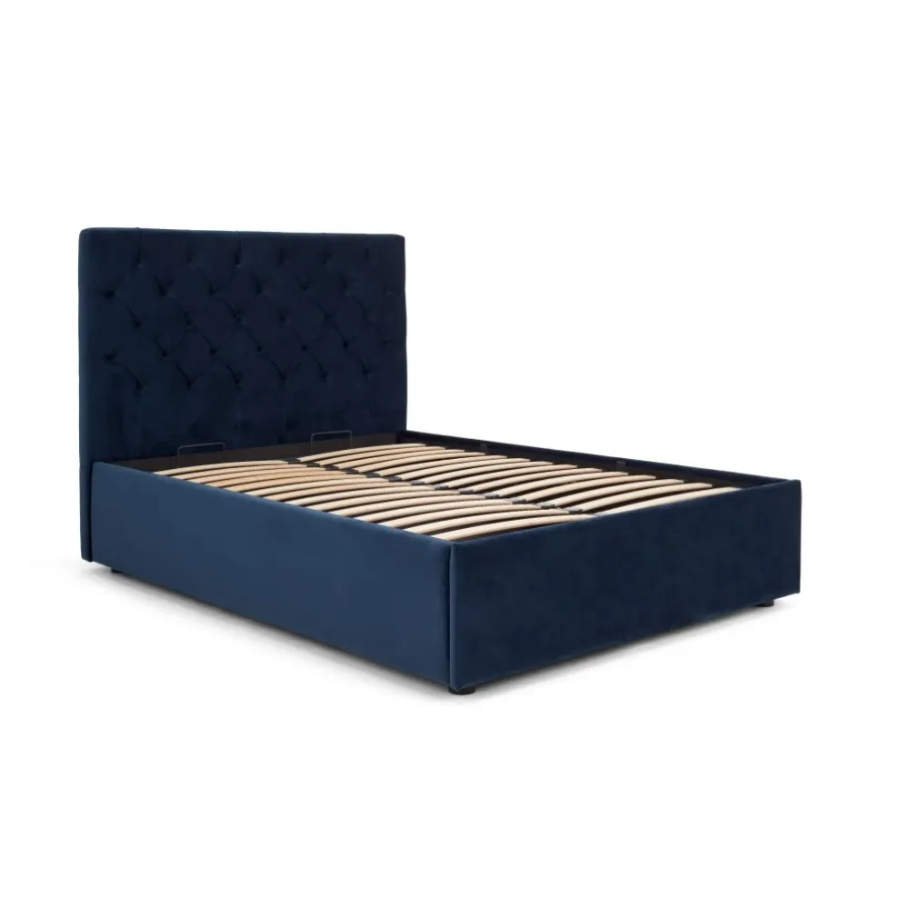 Cama Europea Otomana Skye – Terciopelo Azul Real