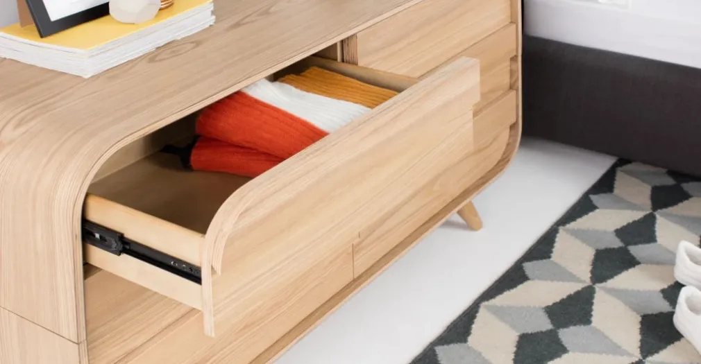 Este mueble está fabricado con materiales de alta calidad, asegurando tu elección. En ella participa el MDF, la madera, sus patas cónicas que dan el toque elegante al mobiliario, sus cajones acompañados de correderas Metálicas. las cuales aseguran un perfecto deslizamiento al momento de guardar tus piezas.