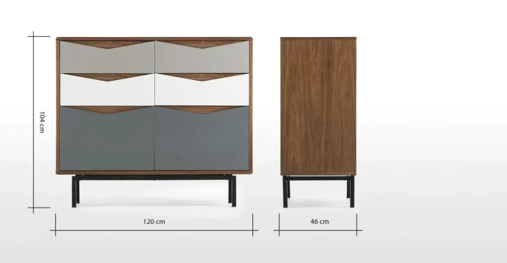 Cómoda Ancha Louis – Nogal y Gris Carbón
