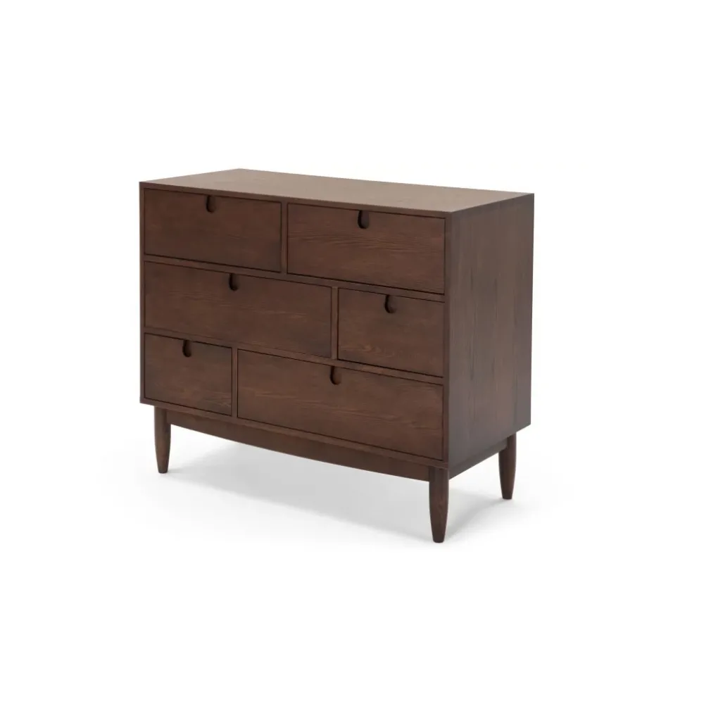 Una pieza de estilo escandinavo para tu dormitorio, es la Cómoda Penn, su original diseño confronta un ambiente cálido en tu habitación, perfecta para mantener la ropa y otros artículos almacenados.