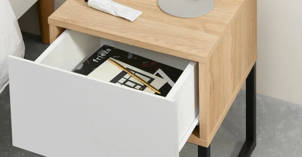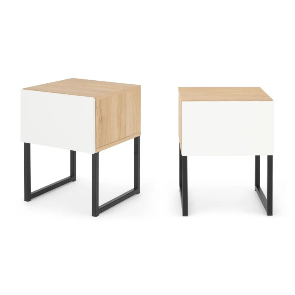 Conjunto de 2 mesitas de noche Hopkins – Efecto roble y blanco