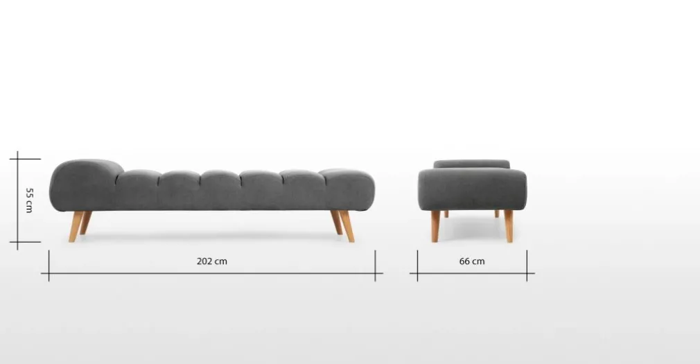 Medidas de Diván: Largo: 202 cm | Profundo: 66 cm | Alto: 55 cm