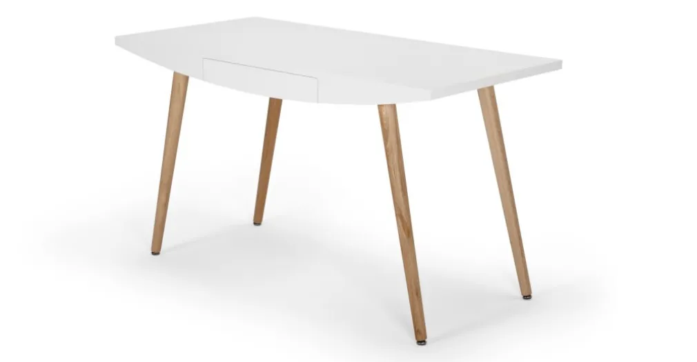 Elegante y práctico, el escritorio Camber moderniza cualquier oficina o dormitorio. Sus patas en ángulo y su parte superior curva le dan un encanto redondeado.