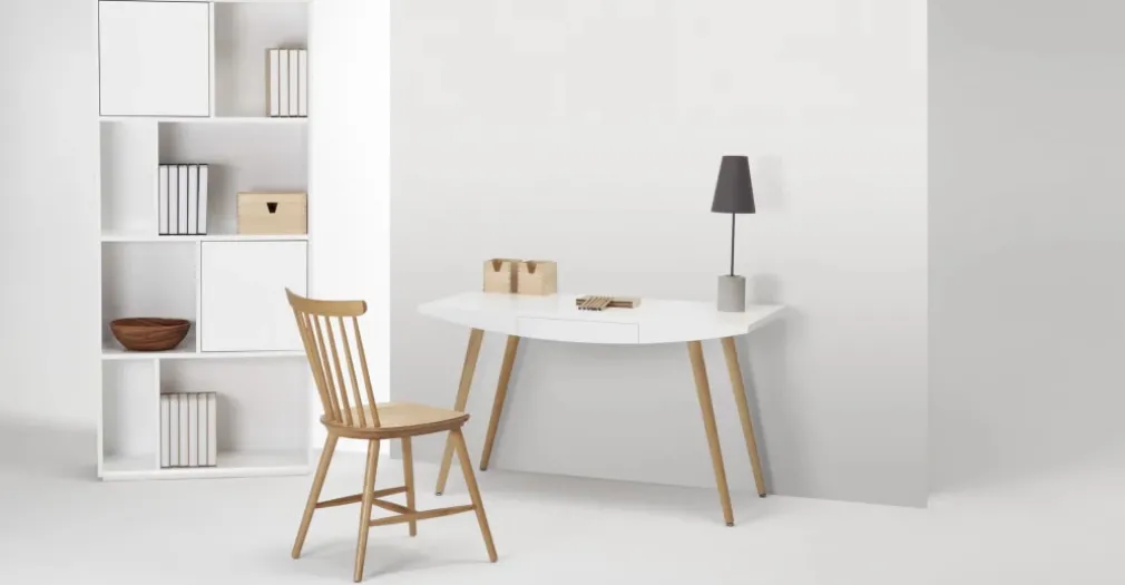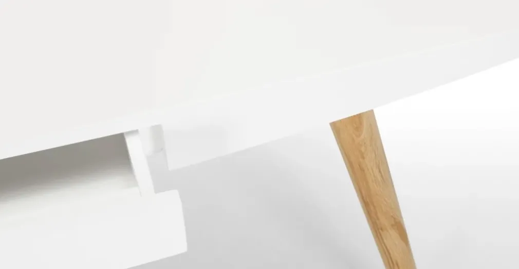 Incluso el cajón de almacenamiento es una característica unica de su diseño. Posicionado centralmente, queda al ras contra el escritorio, perfecto para tener a mano lo esencial.