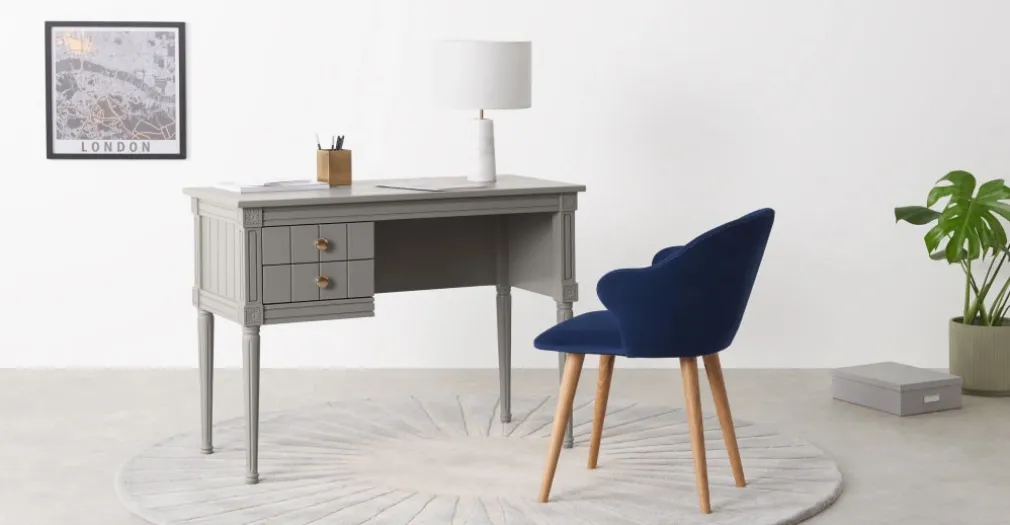 Impresiona con este estilo tu lugar de trabajo, adecuado para pocas dimensiones, con accesorios en sus cajones propios de la linea neoclásica.