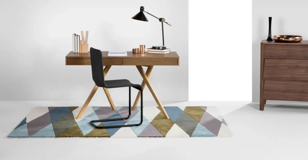 Sus disimulados cajones de dimensiones exactas a la lámina principal te ofrecen un espacio para guardar tus artículos y documentos sin modificar su diseño. La altura de sus patas cruzadas le da un nivel a este escritorio que toma en consideración la ergonomía como un concepto clave para tu salud y la comodidad en el puesto de trabajo.