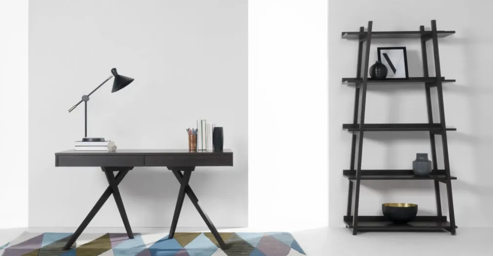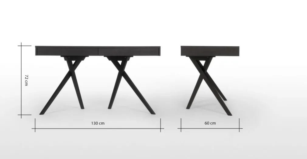 Sus disimulados cajones de dimensiones exactas a la lámina principal te ofrecen un espacio para guardar tus artículos y documentos sin modificar su diseño. La altura de sus patas cruzadas le da un nivel a este escritorio que toma en consideración la ergonomía como un concepto clave para tu salud y la comodidad en el puesto de trabajo.