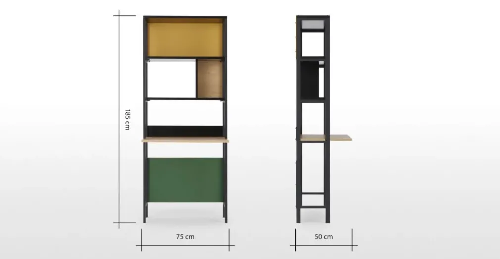 Medidas del Escritorio: Alto: 185 cm | Largo: 75 cm | Profundo: 50 cm