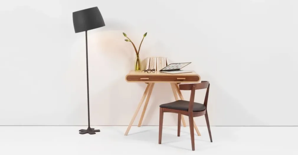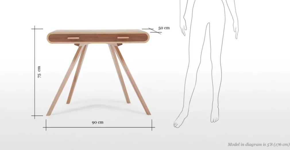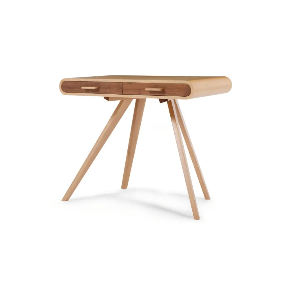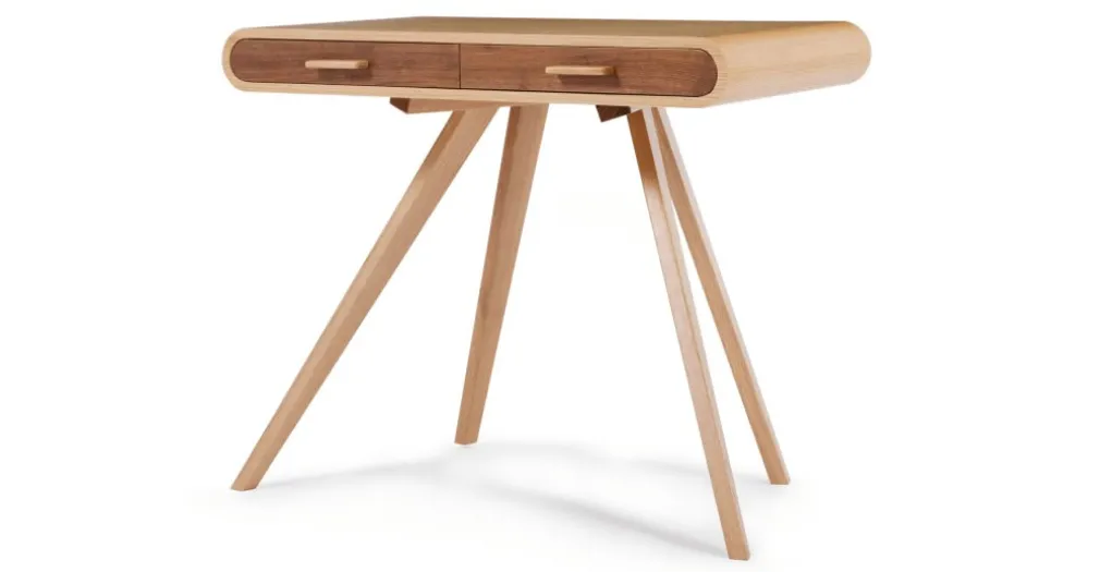 Con curvas pronunciadas, patas en ángulo y colores claros u oscuros hacen del Escritorio Fonteyn una adición llamativa a cualquier hogar. Su tablero de MDF crea un acabado táctil y lujoso, mientras que la laca transparente resalta la belleza natural de las sólidas patas de madera.