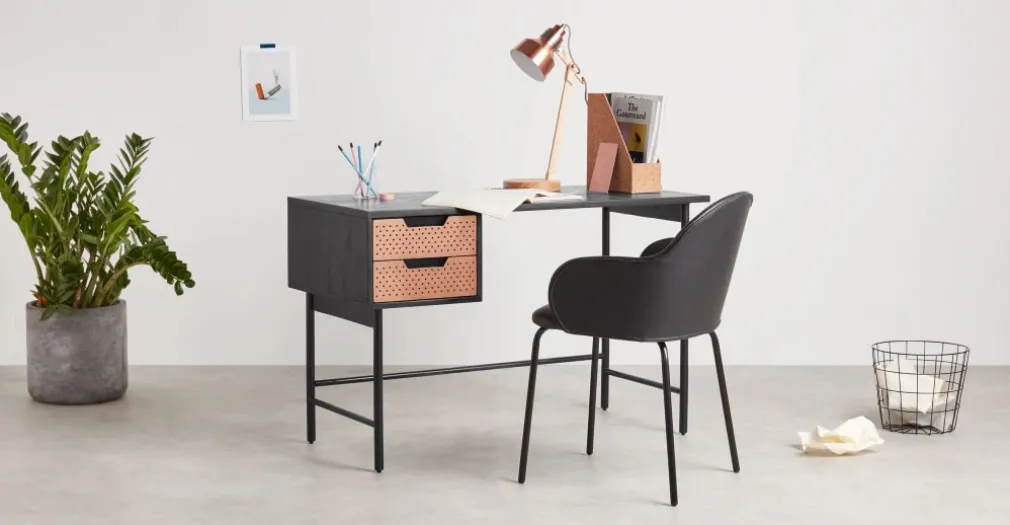 Este material no solo es versátil sino que su fácil manejo expone la creatividad con la que se visualiza en El Escritorio Franklin en aleación con el laminado MDF es la combinación que destaca tu estilo.