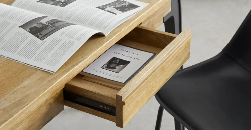 Hay multitud de variedades cada una con sus méritos, pero el Escritorio Lucien se destaca entre todos porque es una pieza única con variaciones naturales de madera de tornillo que logra un acabado único en este mueble.