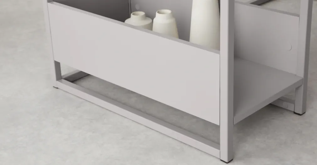| Material: | Estructura de fierro, cajones y tablero en melamine. |