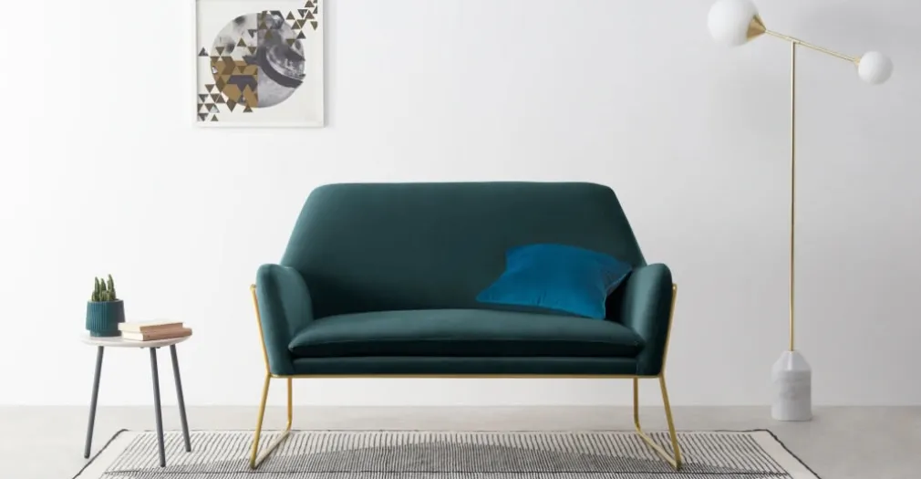 Creados para dejar huella en cualquier habitación, este Loveseat color Azul Petróleo presenta un marco exterior que puedes escoger entre acero plateado o bronce dorado, y lo mejor de todo es que no compromete la comodidad.