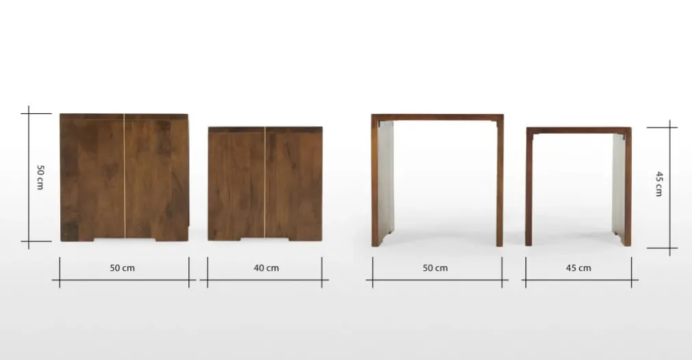 Medidas de la Mesa: Alto: 50/45 cm | Ancho: 50/40 cm | Profundo: 50/45 cm.