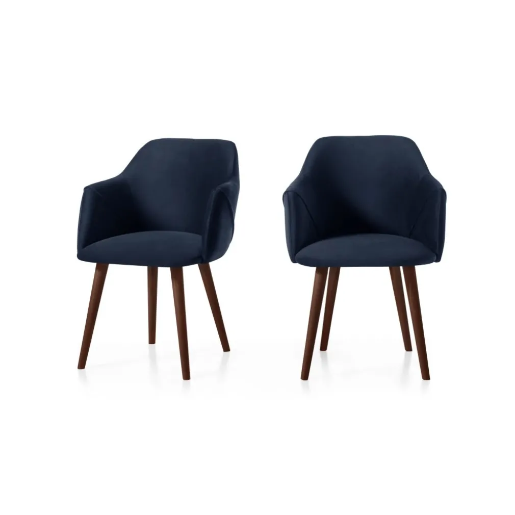 Juego de 2 sillas carver de comedor Lule – Terciopelo azul real y nogal