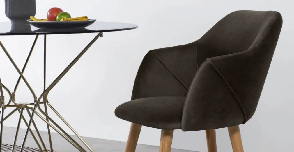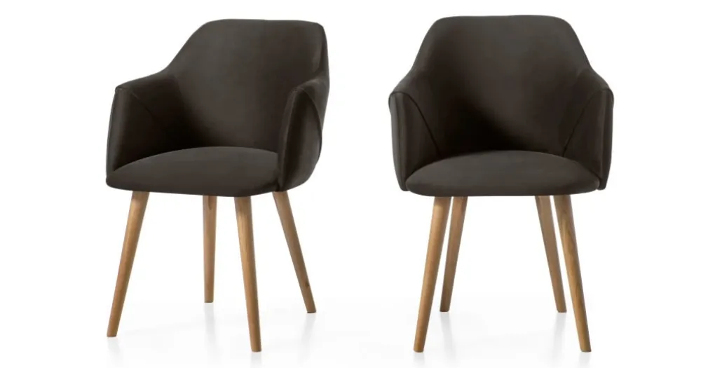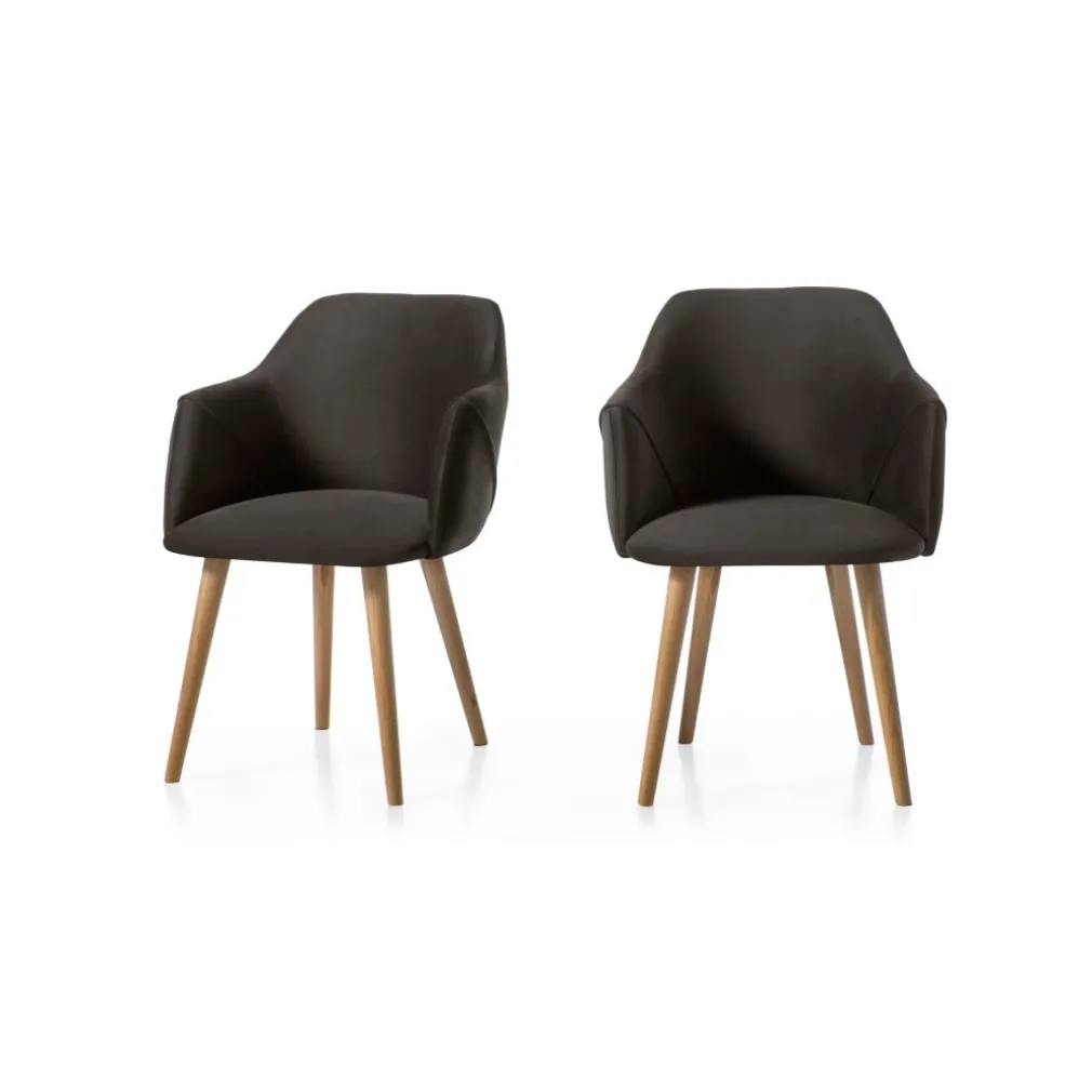 Juego de 2 sillas carver de comedor Lule – Terciopelo gris nutria y roble