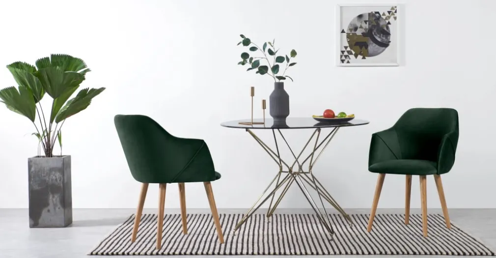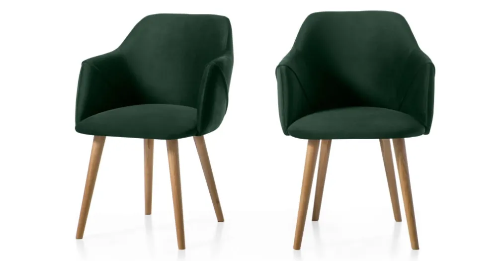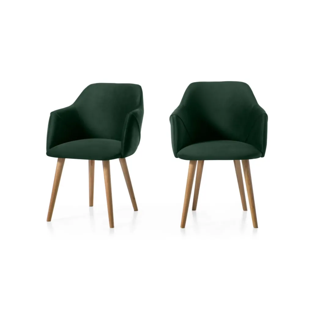 Juego de 2 sillas carver de respaldo alto Lule – Roble y terciopelo verde pino