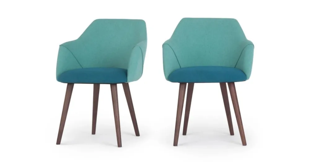 Juego de 2 sillas de comedor carver de respaldo alto Lule – Azul mineral y verde esmeralda
