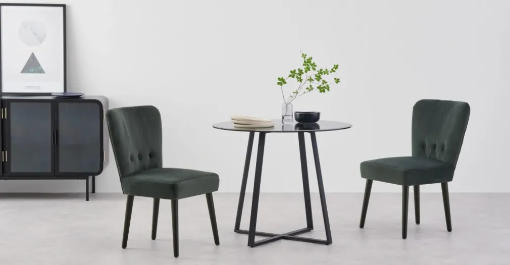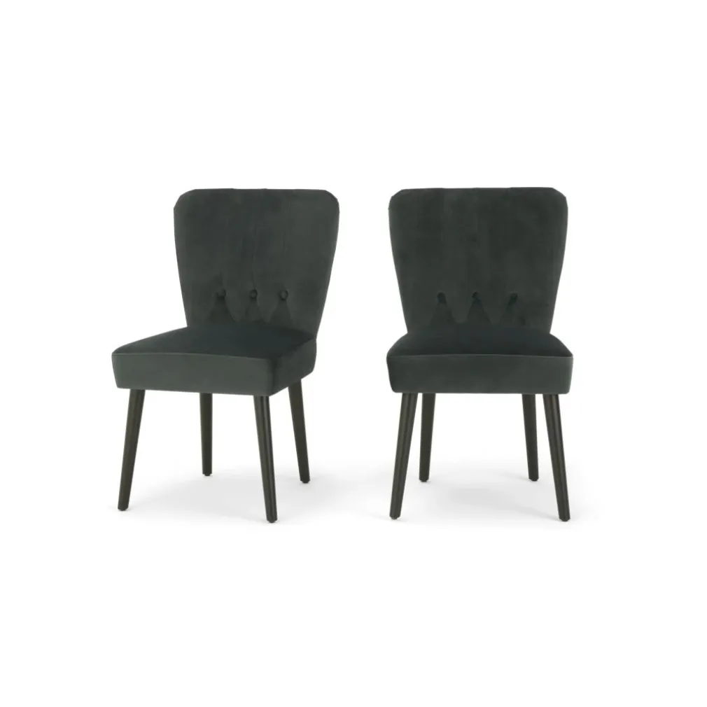 Juego de 2 sillas de comedor Charley – Terciopelo gris medianoche y negro
