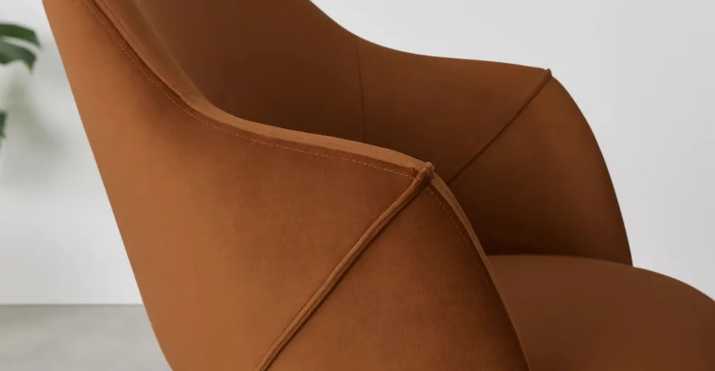 Juego de 2 sillas de comedor con reposabrazos Lule – Terciopelo naranja y nogal