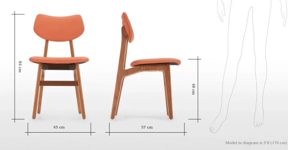 MEDIDAAltura (cm): 84Anchura (cm): 45Profundidad (cm): 57Altura de las patas (cm): 43Dimensiones del asiento (HWD): 44 x 38 |