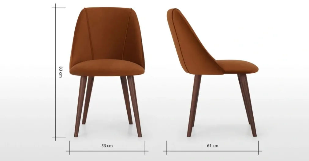 Juego de 2 sillas de comedor Lule – Terciopelo naranja y nogal