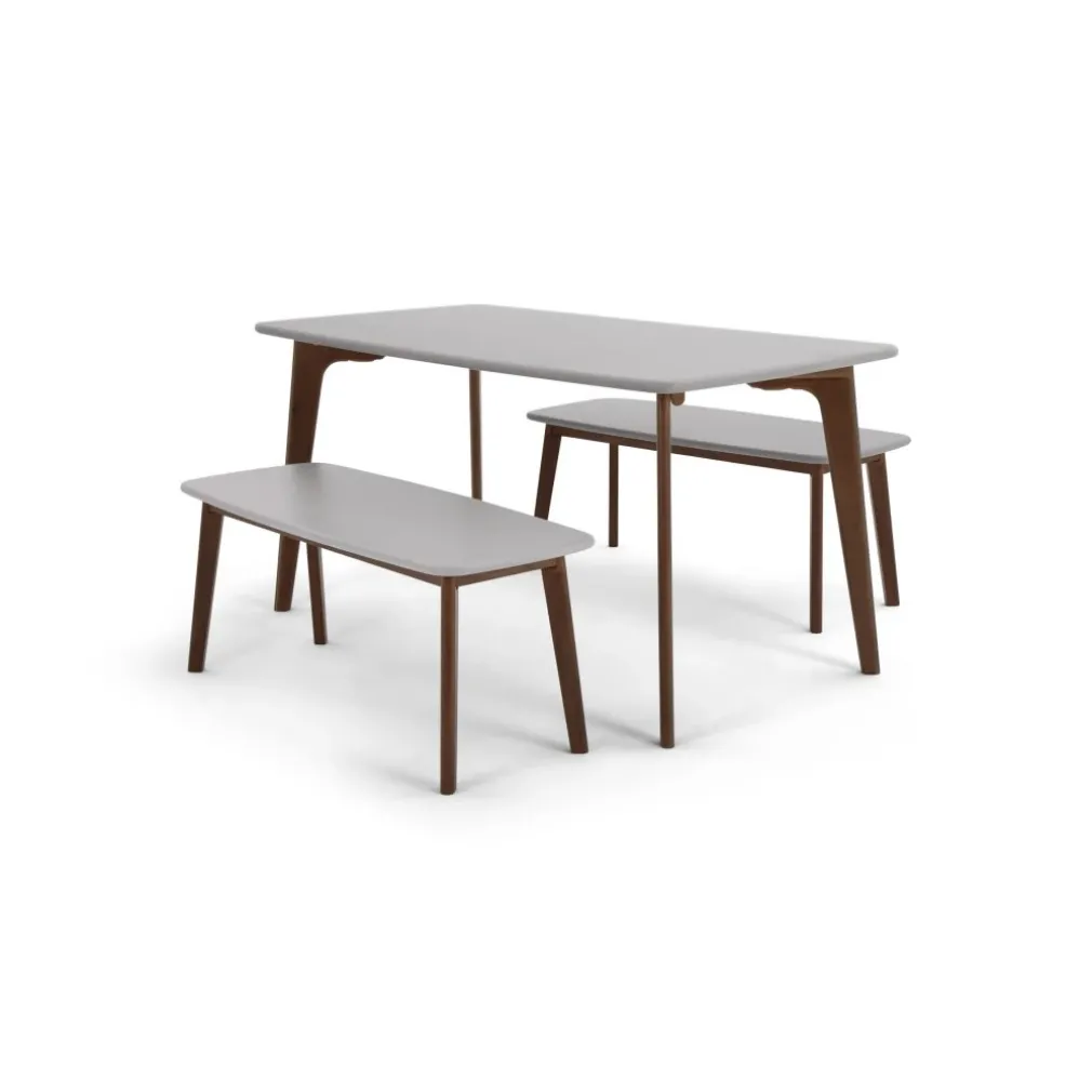 Juego de Bancos y Mesa de Comedor Rectangular Fjord – Roble Oscuro y Gris