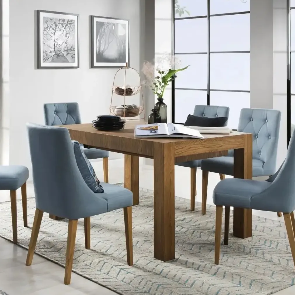 El Juego de Comedor Polaris viene para quedarse en casa, su diseño exclusivo te encantará. Este juego de comedor viene acompañado de unas sillas que cuentan con un estilo nórdico o moderno. Tienen una línea sencilla que aporta confort gracias a su acolchado de tapiz suave.