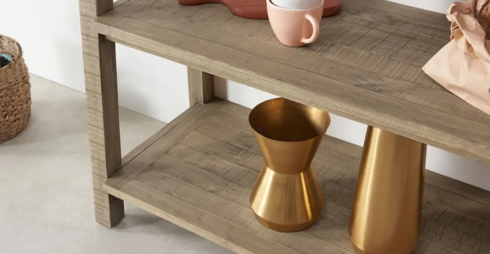 El librero Iona con un acabado de pintura envejecida con efecto pino es único y al instante le dará carácter a cualquier estancia donde lo ubiques.