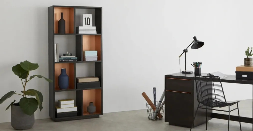 Fabricada en MDF oscuro y de aspecto industrial, este librero siempre será el atractivo de cualquier habitación. Anderson es una pieza de mobiliario impresionante que agregará una sensación de lujo a cualquier espacio.
