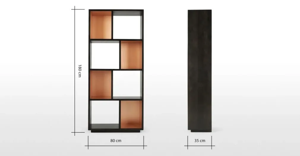 Medidas del librero: Alto: 180 cm | Ancho: 80 cm | Profundo: 35 cm.