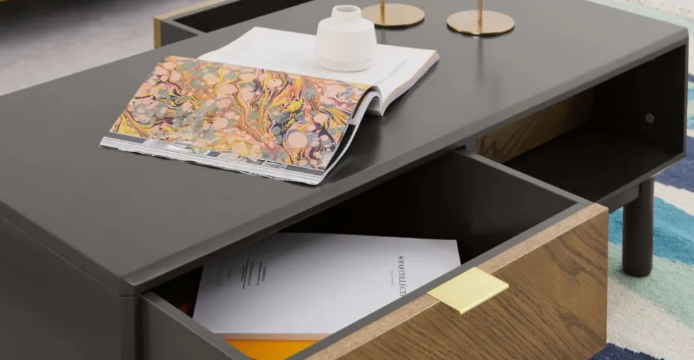 Con un diseño alineado al estilo contemporáneo sus cajones de fácil cierre pueden almacenar muchos objetos que no deseas que estén a la vista de las visitas.