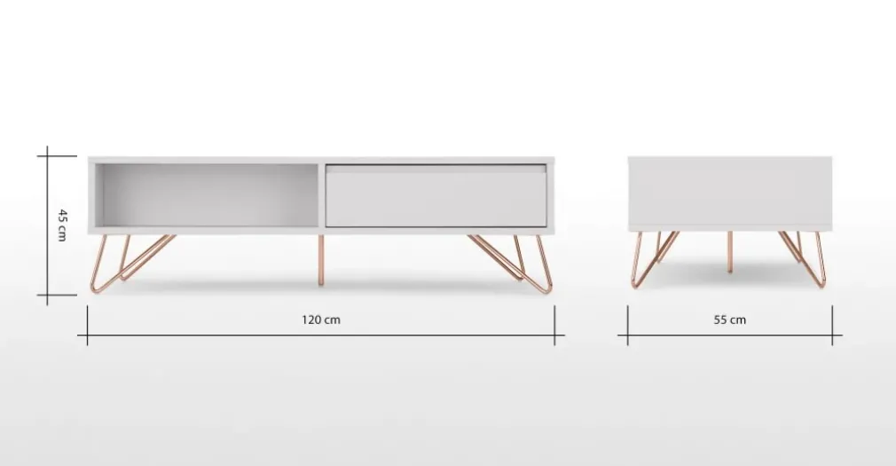 Medidas de la Mesa: Alto: 45 cm | Ancho: 120 cm | Profundo: 55 cm.