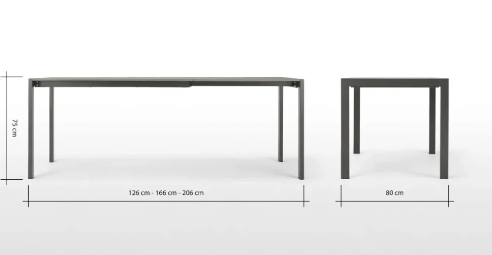 Medidas de la Mesa: Alto: 75 cm | Ancho: 126 – 166 – 206 cm | Profundo: 80 cm.
