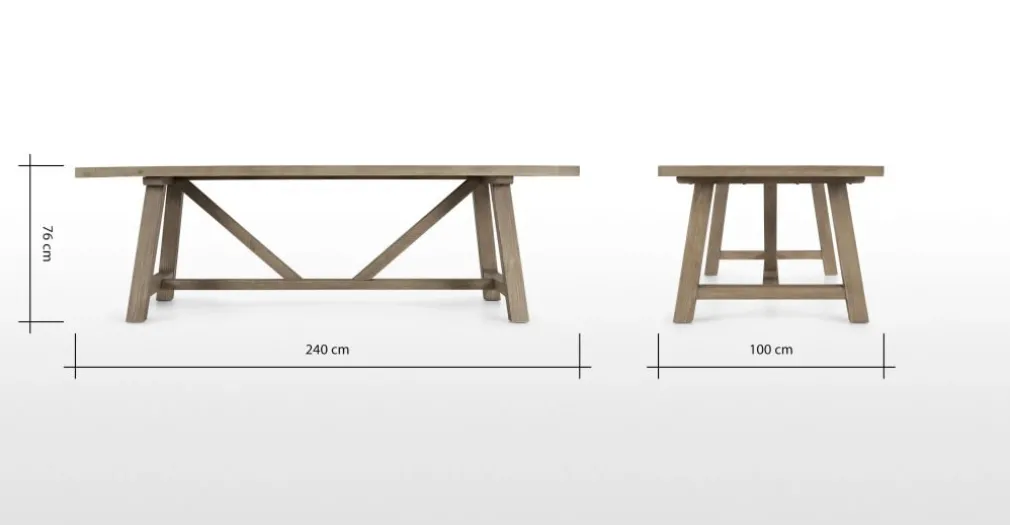 Medidas de la Mesa: Alto: 76 cm | Ancho: 240 cm | Profundo: 100 cm.