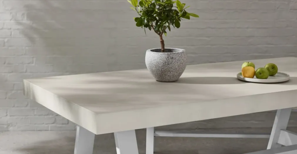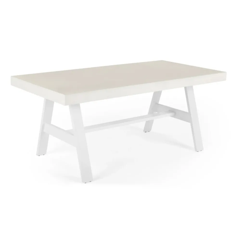 Esta mesa de comedor para exteriores es un reflejo del estilo minimalista, caracterizado por líneas limpias y formas simples. Su diseño funcional se adapta a diferentes preferencias de decoración, desde espacios modernos hasta jardines más tradicionales.