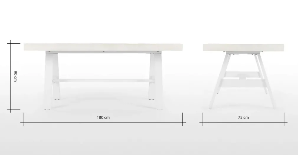 Medidas de mesa: Largo: 180 cm | Profundo: 75 cm | Alto: 90 cm.