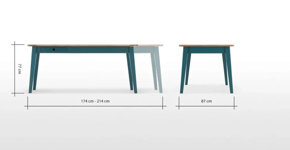 Medidas de la Mesa: Alto: 77 cm | Ancho: 174 – 214 cm | Profundo: 87 cm.