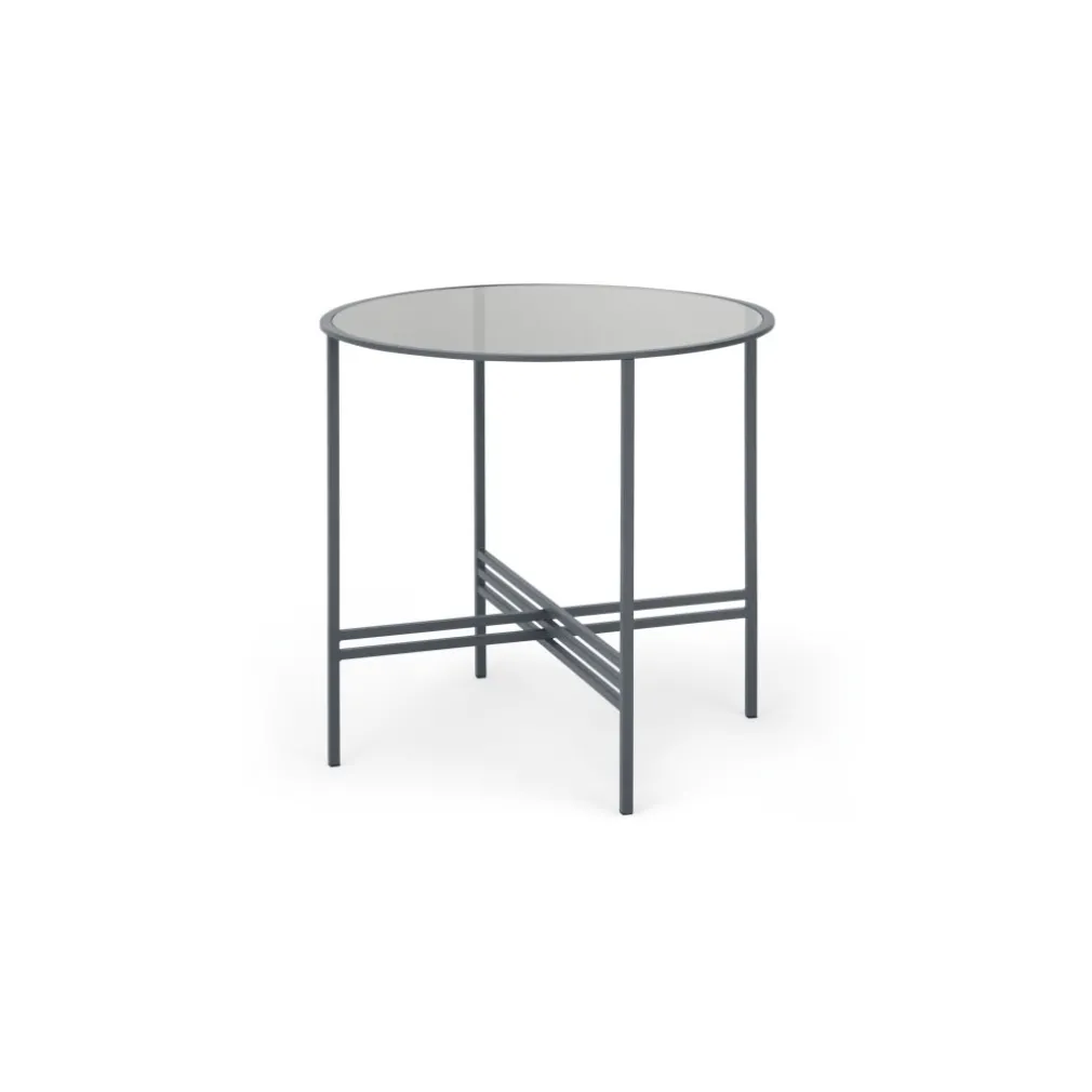 Mesa de Comedor Redonda Poppy – Metal y Cristal Ahumado