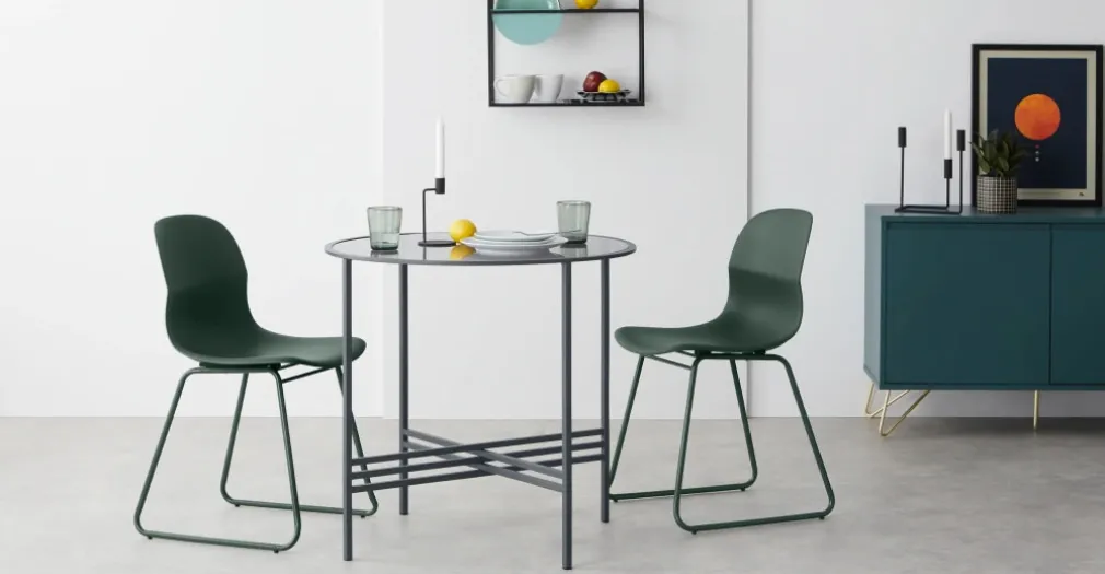Esta mesa deja espacio para moverse cómodamente, son perfectas para espacios reducidos y encajan en comedores modernos y una de sus grandes virtudes es que puedes añadir sillas extras.