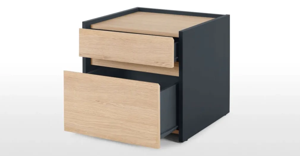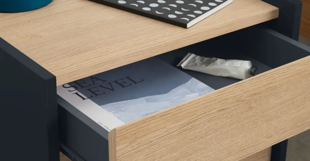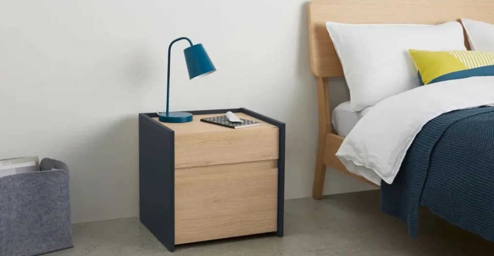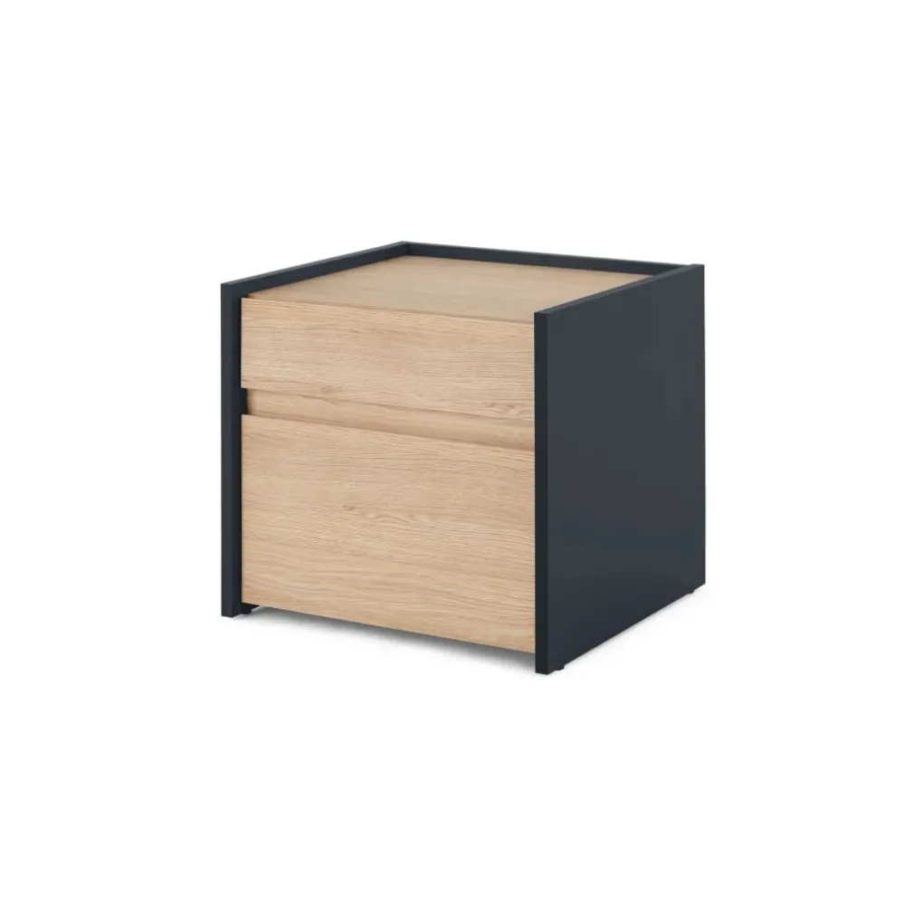 Mesa de noche Stu – Efecto roble y azul océano