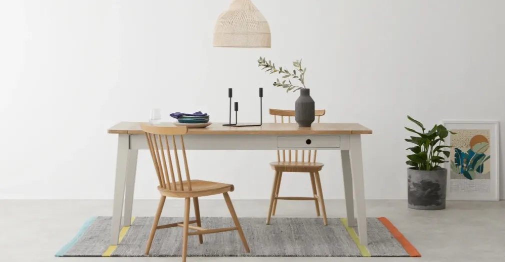 La parte superior de madera contrasta con las divertidas patas de color Nordico Gris, que aportan un toque contemporáneo y divertido a estos bancos multifuncionales.